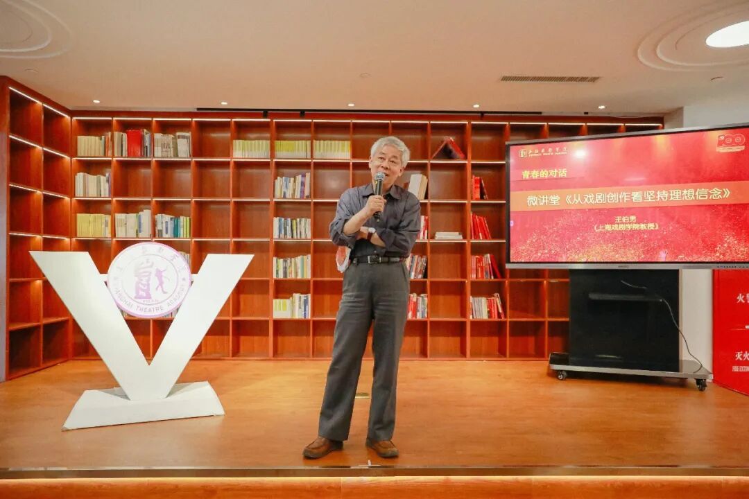 在“青春对话”环节,王伯男教授讲述如何从戏剧创作看坚持理想信念,鼓励上戏学子创作更多展现时代特色的戏剧,创作出更多人民群众新闻乐见的作品。