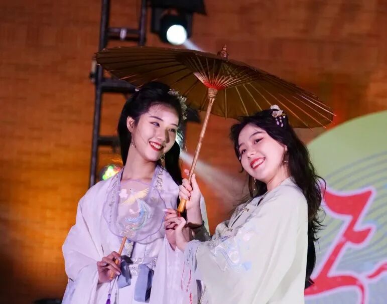 来自汉服社成员们的汉服展示秀素雅优美,引人入胜。