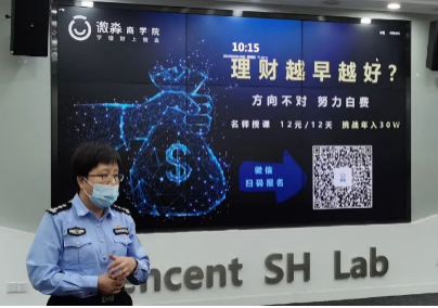 市反诈中心反诈专家范华警官向同学们介绍中心成立背景和此次活动的主要目的。数据显示,近年来诈骗受害人年轻化趋势越加明显,受骗者中18岁至35岁年龄段群体占比70%以上,远超过老年群体。因此,应当重视大学生反诈骗教育工作,使同学们在走出社会时具备良好的骗局辨别能力和自我防范能力。范警官以大厅展板上展示的三种较为常见的骗局为例,向同学们讲解诈骗犯罪分子的常见套路。