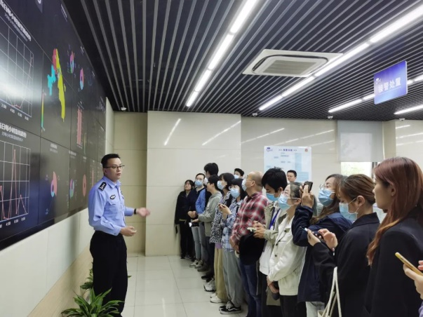 范警官带领同学们进入预警劝阻大厅,了解反诈中心的每日工作。反诈中心现已实现公安部门、商业银行、通信运营商、金融清算机构等多部门联合办公。从开展反诈骗讲座等日常宣讲活动、到劝阻正在陷入骗局的被骗对象,再到接到报案电话后的立案侦破,反诈中心的警官们力争将工作做细做实,最大程度保障人民生命财产安全。