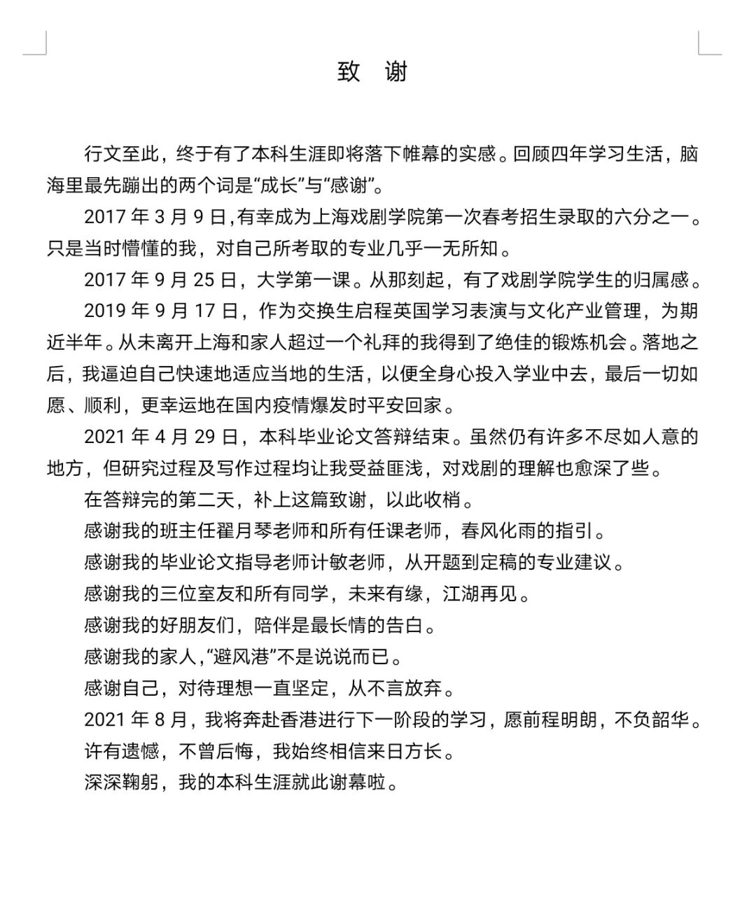 “那一刻我恍惚间觉得,好像好多关于上海,关于上戏的事情都发生在上个世纪。而这些事情,从此再也与我无关。”