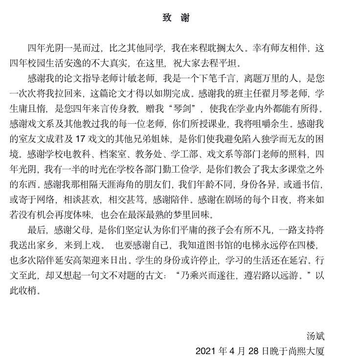 一篇短短的致谢中