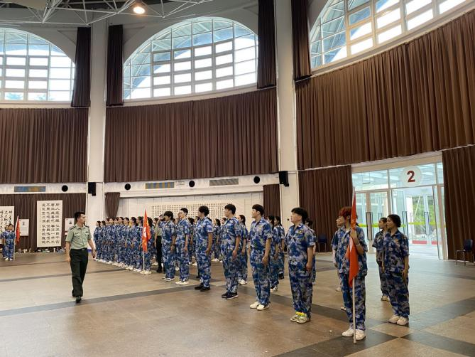 “灿都”席卷下的东方绿舟,道旁的梧桐叶在每一阵劲风吹过时猎猎作响,21届的军训接近尾声,同学们迎来了结营仪式的彩排。