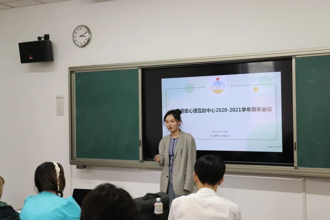 2021年6月24日,朋辈中心2020-2021学年期末会议在华山路校区红楼207教室顺利举行。会议由朋辈中心向碧华老师陈述开场,随后展开主席团成员及各部门负责人的述职报告。
