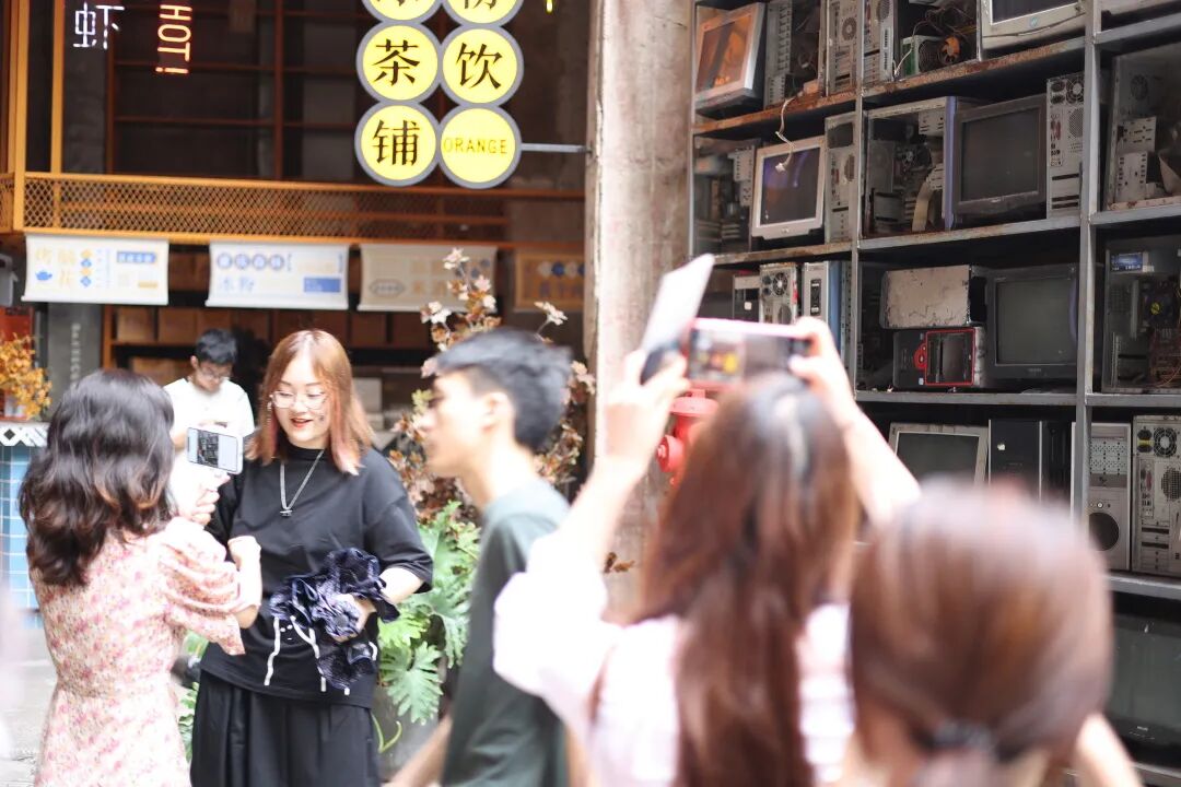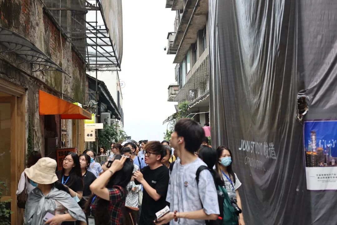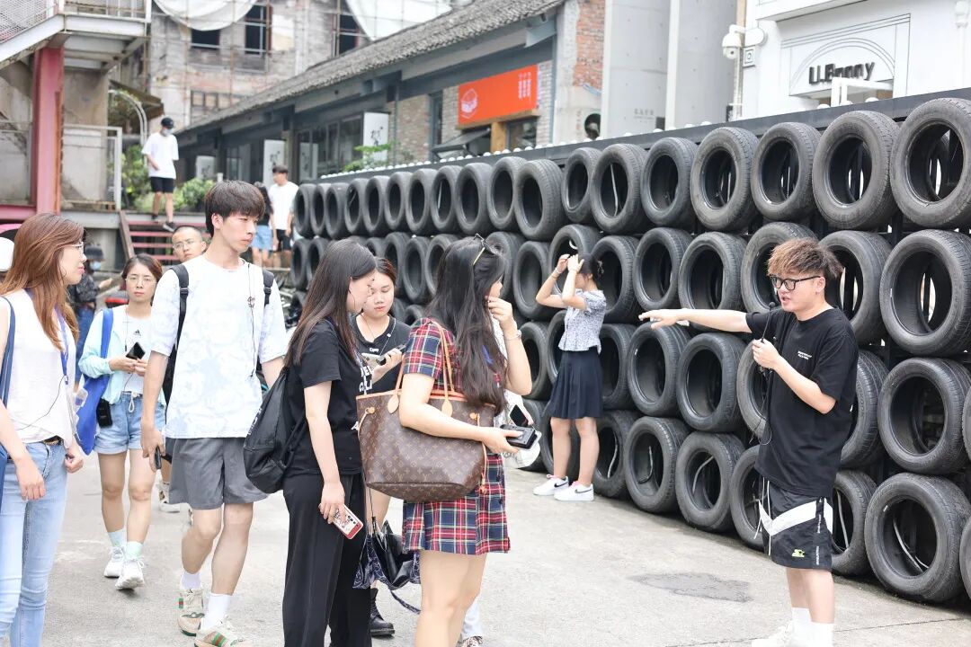 下午,团队一同前往了鹅岭贰厂文创园区,它的前身是重庆印制二厂,可以说曾是西南印刷工业的彩印巨头。改造的老厂房保留了独栋旧楼原有的风貌,加入了现代设计的艺术风格,老与新的交织,历史与现代的交融,传统与创新的碰撞,展现了重庆文化创意园独具特色魅力。其中电影《从你的全世界路过》也曾在此取景,电影当中出现的爱情天台和城市电台复原场景,面向公众开放参观。在天台上,同学们与贰厂管理人员就贰厂改造与发展的情况进行了交流。