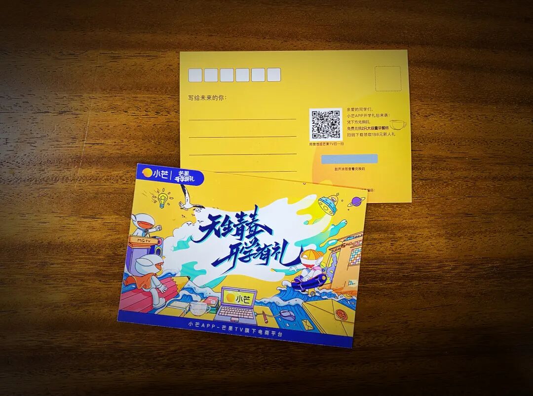 芒果TV 2021特别定制开学季明信片,刮开背面涂层,用芒果TV扫码免费领取芒果会员哦!