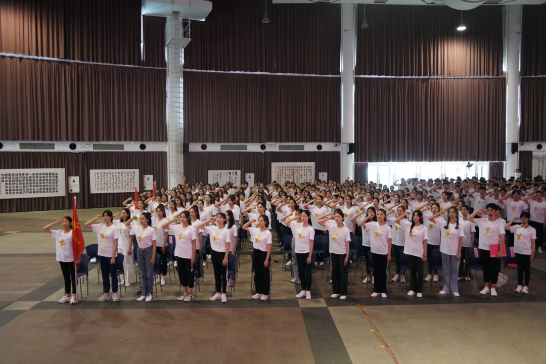 在总教官的带领下,全体参训学生面向国旗郑重宣誓,立下铮铮的青春誓言。