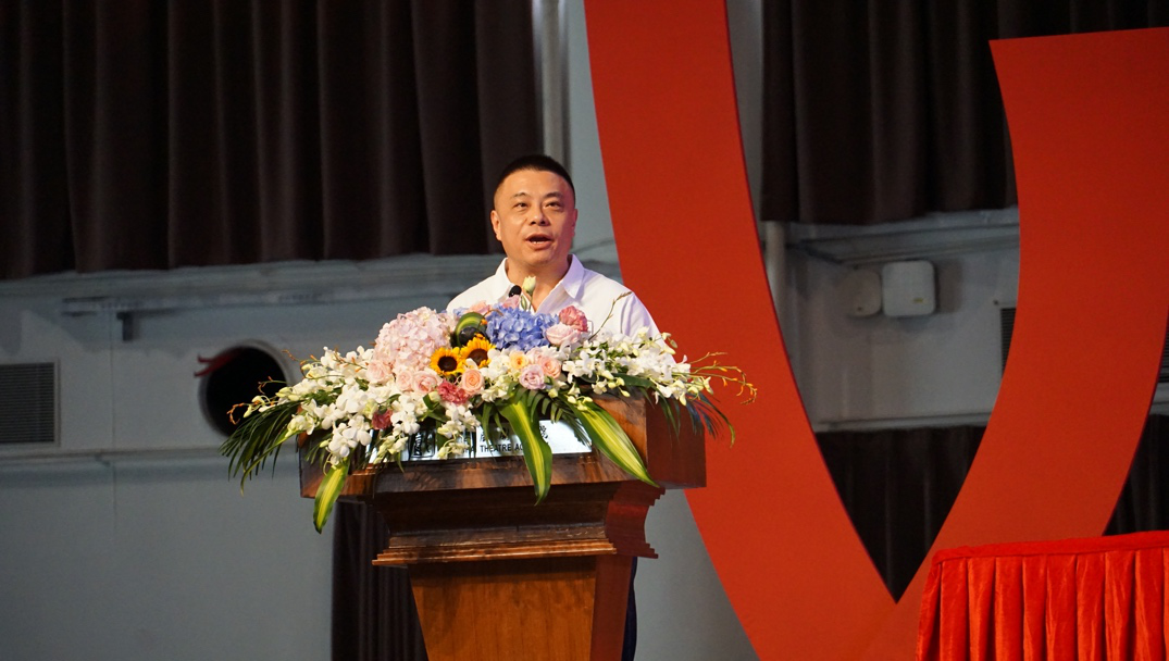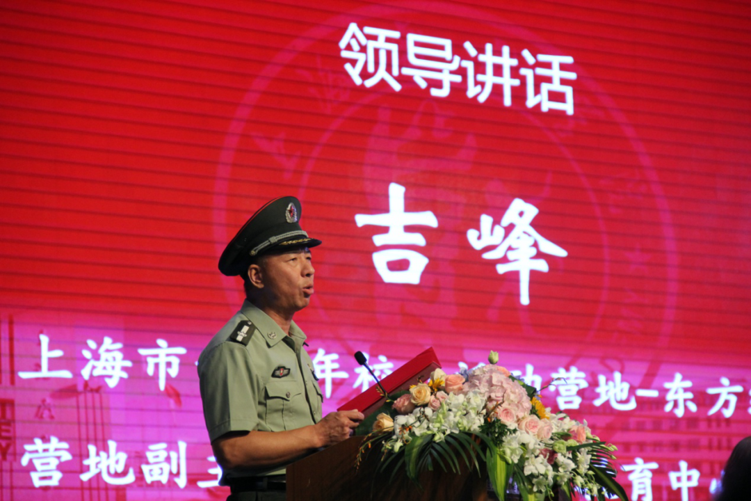 上海市青少年校外活动营地-东方绿舟营地副主任、上海市国防教育中心主任吉峰作动员讲话。他希望同学们能够充分了解军训文化,在东方绿舟这块土地上收获成长。他强调,同学们要关心国防建设,“国无防不立,国无兵不安”,通过这次军训强化国防意识,形成优良的团队作风,为今后的学习生活加油鼓劲,为实现第二个百年梦想奠定坚实的基础。