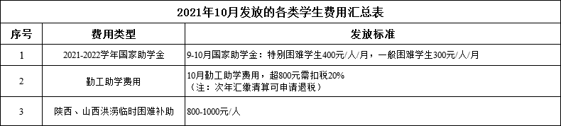 【奖助贷补】关于2021年10月发放的各类学生津贴的说明