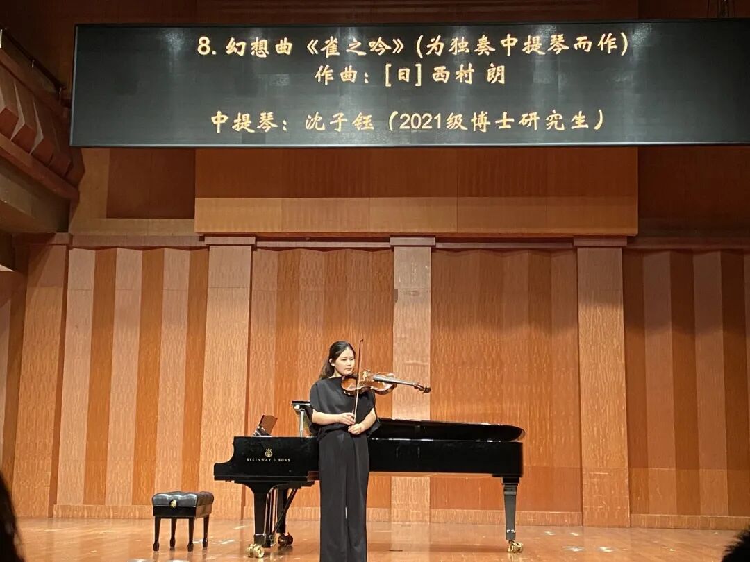 音乐会以“音铭百年 聆艺风华”为主题,演出曲目包括独唱、二重唱、独奏、重奏等多种形式,内容风格上包括中西方以及民族与世界等多元化的交流与碰撞。各式各样的乐器与上音学子们随心而动、率性而为的演绎感染了我们在座的每一位观众,让我们感受到了音乐的魅力,在音乐中汲取力量。在这场视听盛宴中,上音以音乐展现风华,带给我们听觉与视觉上的双重享受,看到了上海音乐学院研究生教育、管理和优秀的教学成果,感受到了上音风采、上音精神。