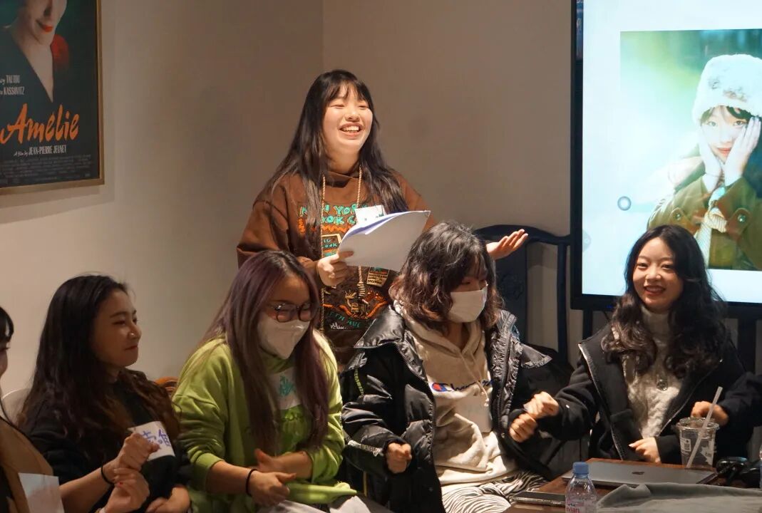 首先,江海同同学带领同学们进行了一个小活动——故事接龙。带有不同图案的卡牌被反面朝上放在桌子上,每位同学分别抽取一张,结合卡牌进行描述,共同形成一个关于“爱”的故事。经由此步骤“小爱”渐渐积聚成为“大爱”,惊喜又精彩。